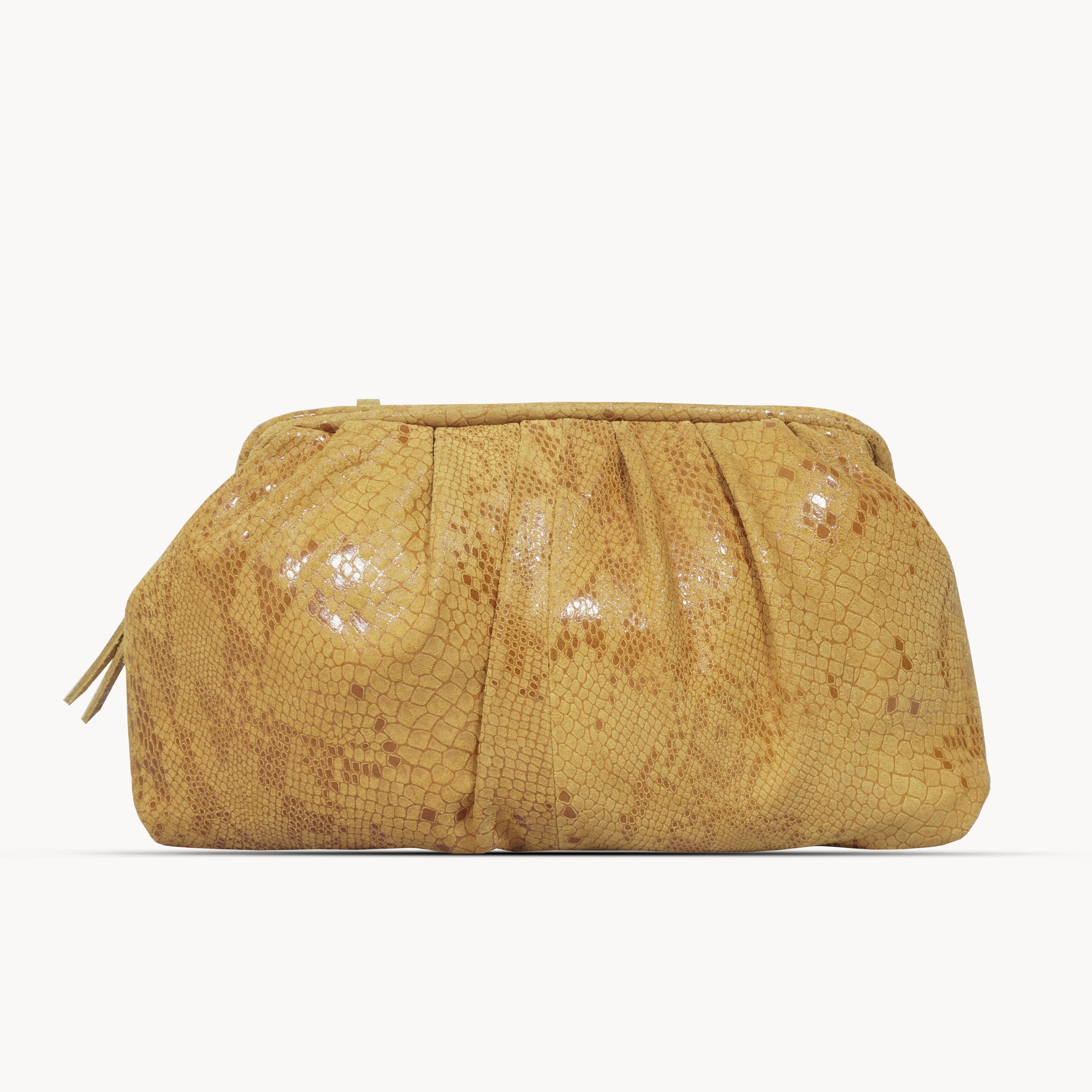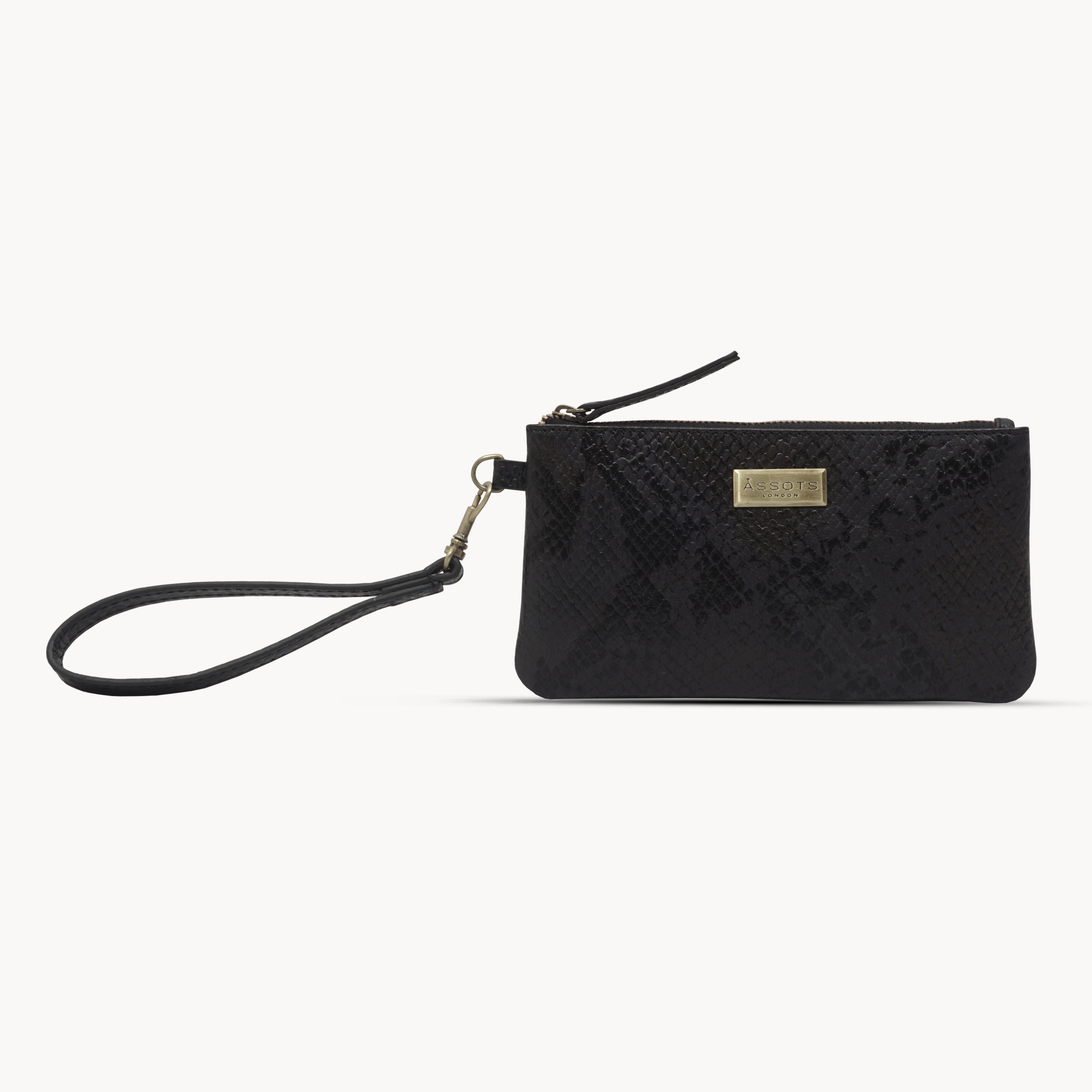 'KAREN' Tan Snake Print Real Leather Wristlet Clutch Bag