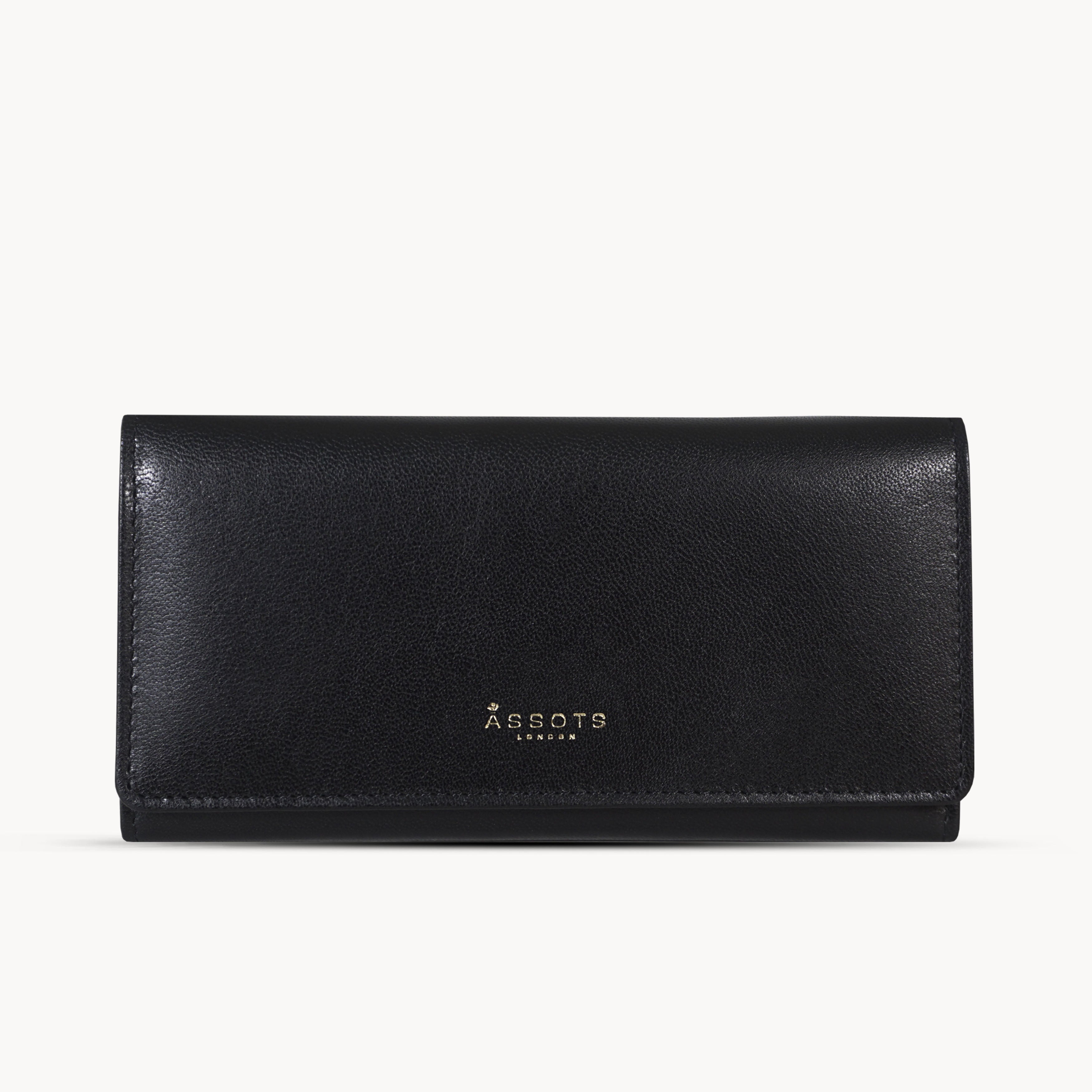 'CLAIRE' Black Polished VT Vintage Leather Flap Over Purse