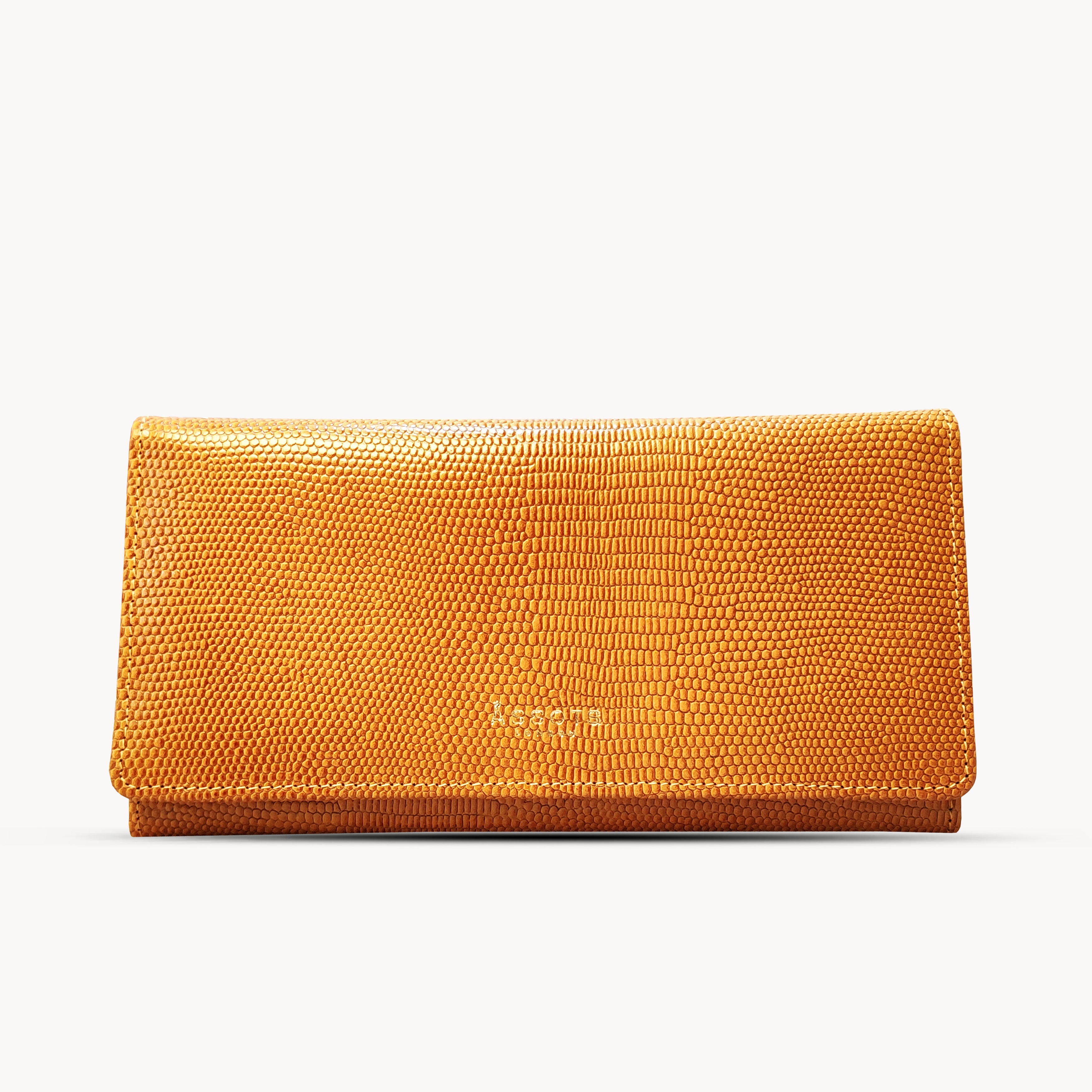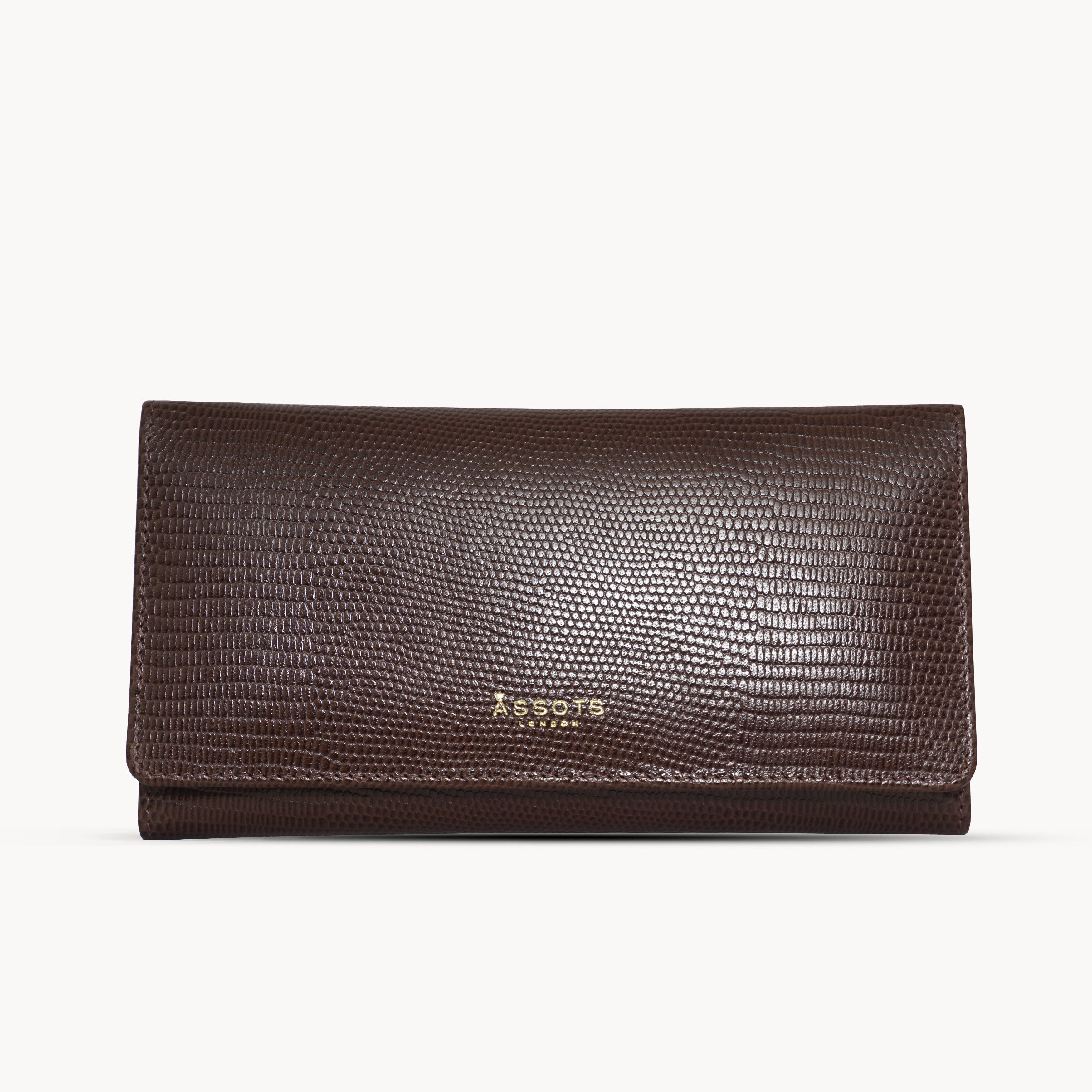 'CLAIRE' Brown Lizard Leather Flap Over Purse