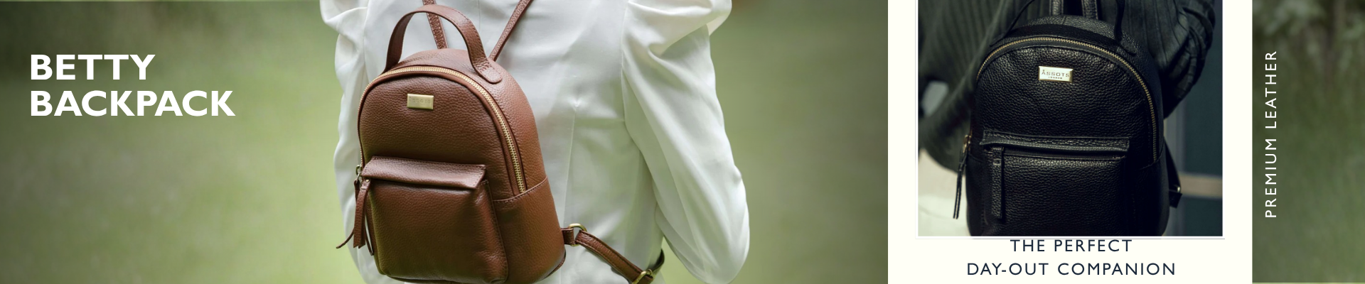 'Betty' Tan Zip Top Mini Pebble Grain Leather Backpack