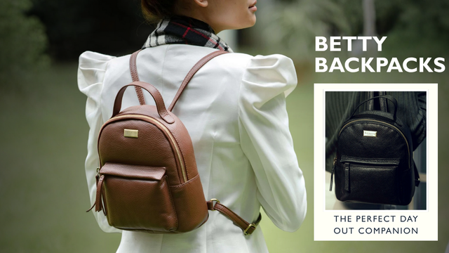 'Betty' Black Zip Top Mini Pebble Grain Leather Backpack