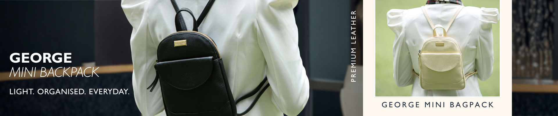 'GEORGE' Black Mini Pebble Grain Leather Backpack