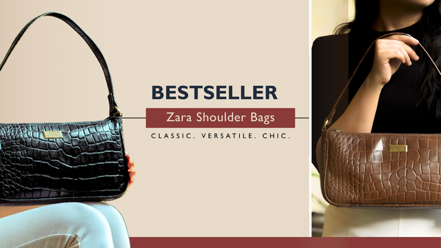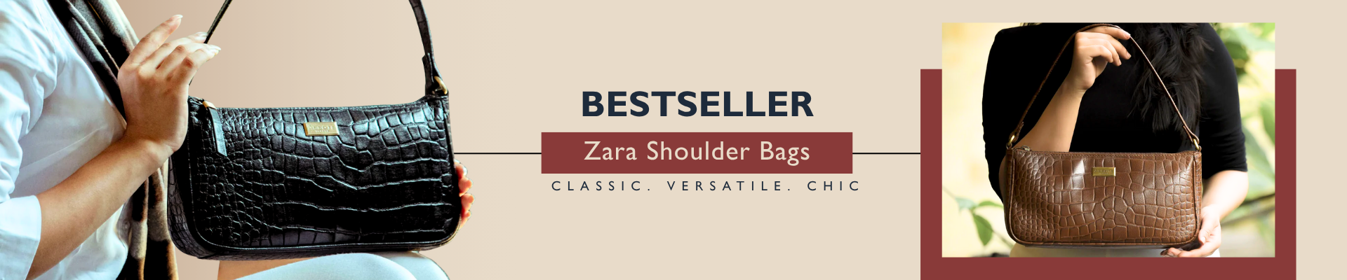 'ZARA' Brown Polished Real Leather Baguette Shoulder Bag