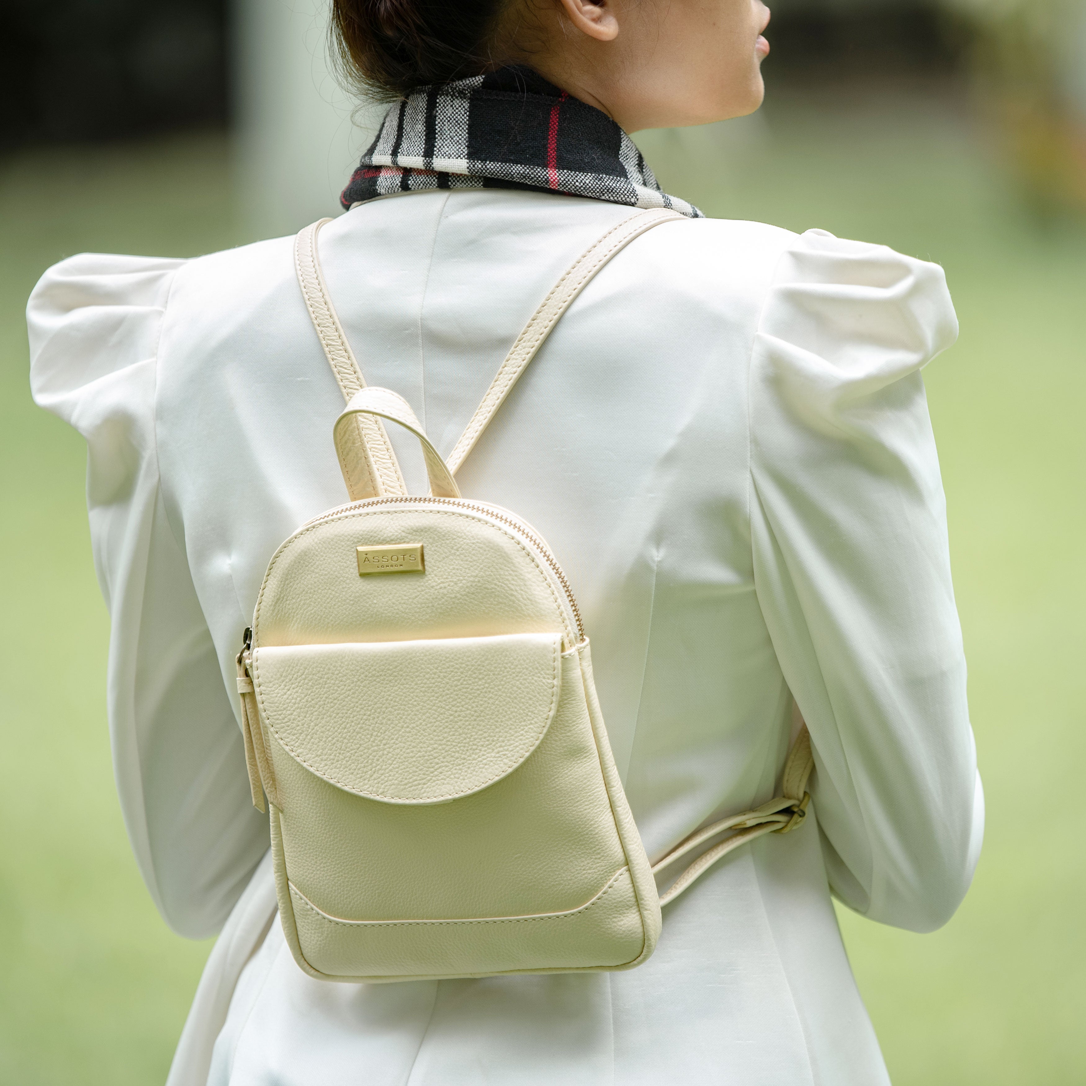 'ELLA' Tan Pebble Grain Mini Real Leather Backpack for Women