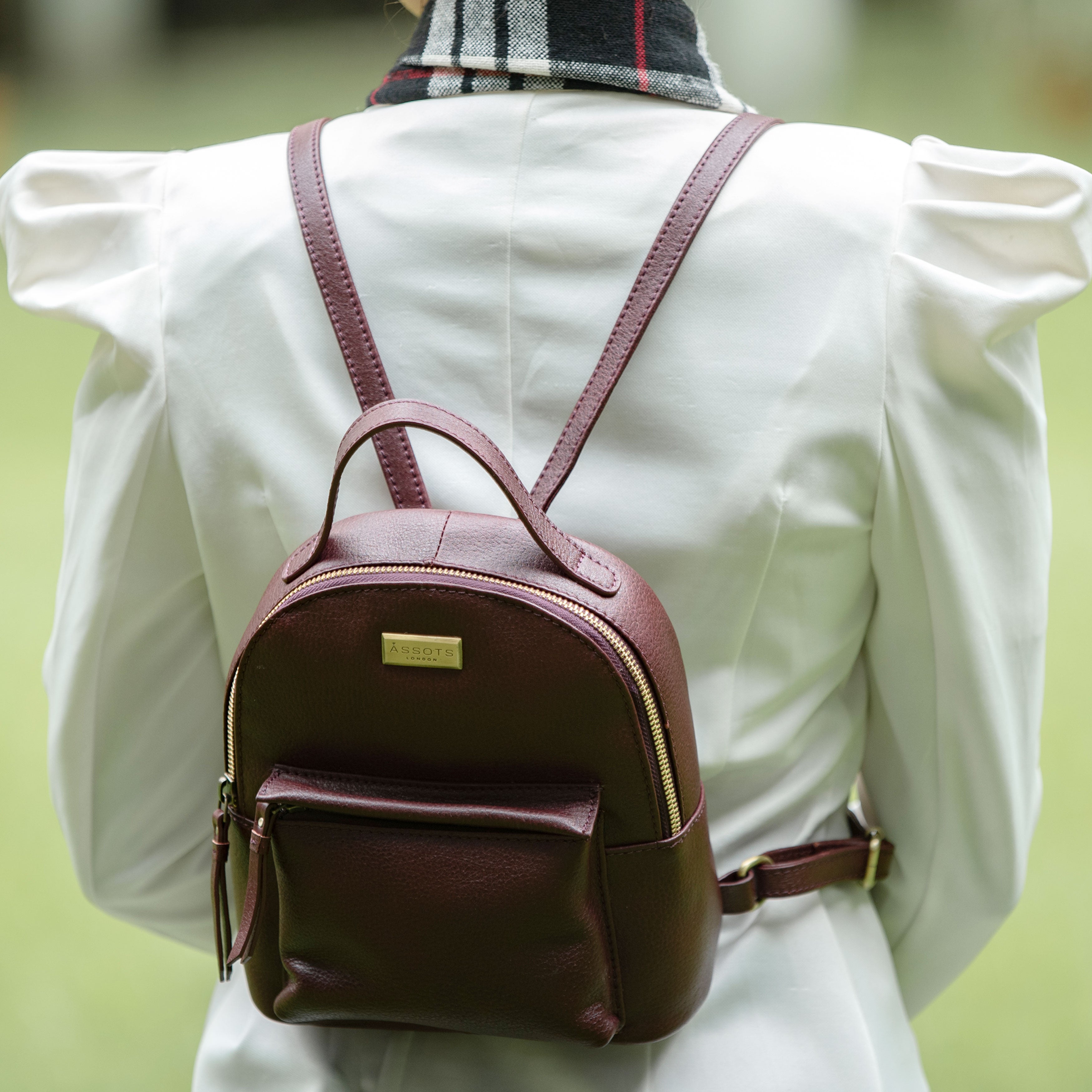 'Betty' Burgundy Zip Top Mini Pebble Grain Leather Backpack