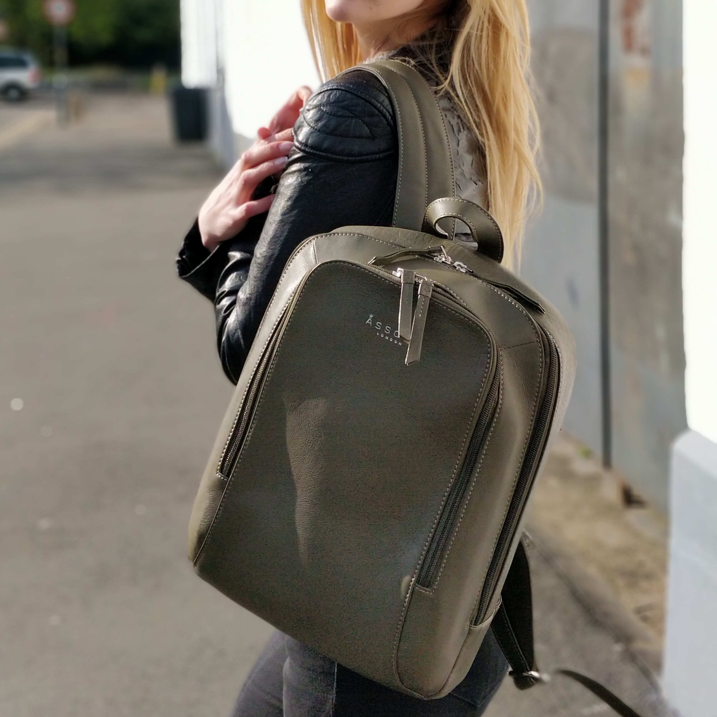 'BAKER' Mokka Brown Full Grain Leather Double Zip Laptop Backpack
