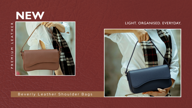 'Beverly' Black Pebble Grain Real Leather Shoulder Bag