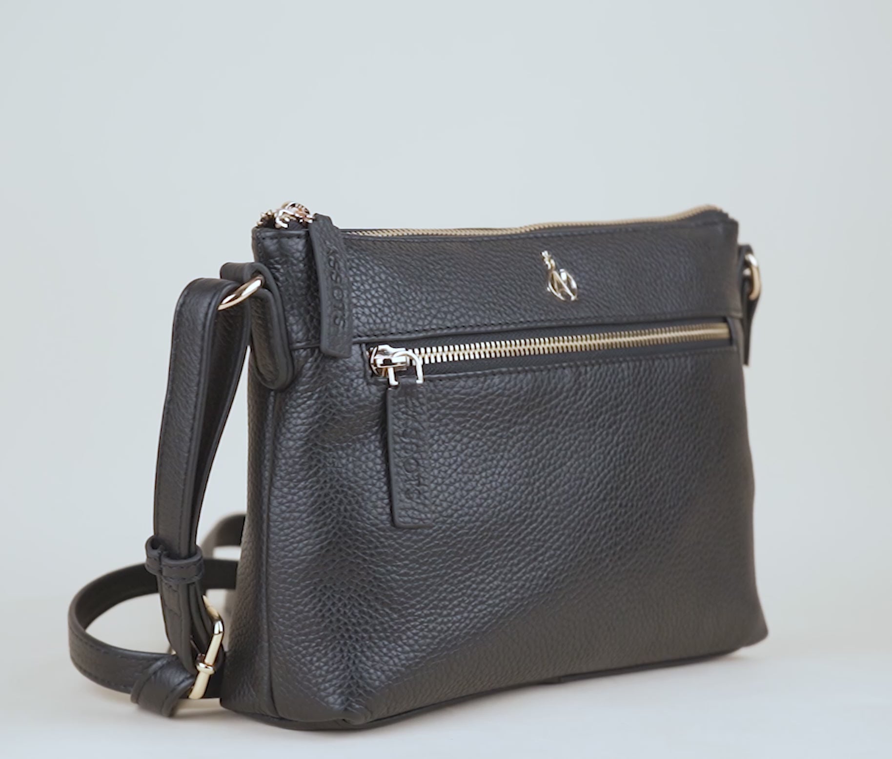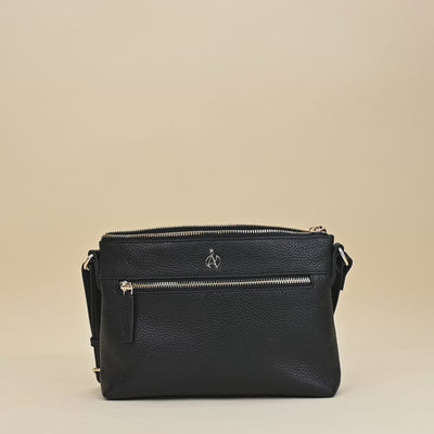 'BECKY' Black Pebble Grain Real Leather Crossbody Bag