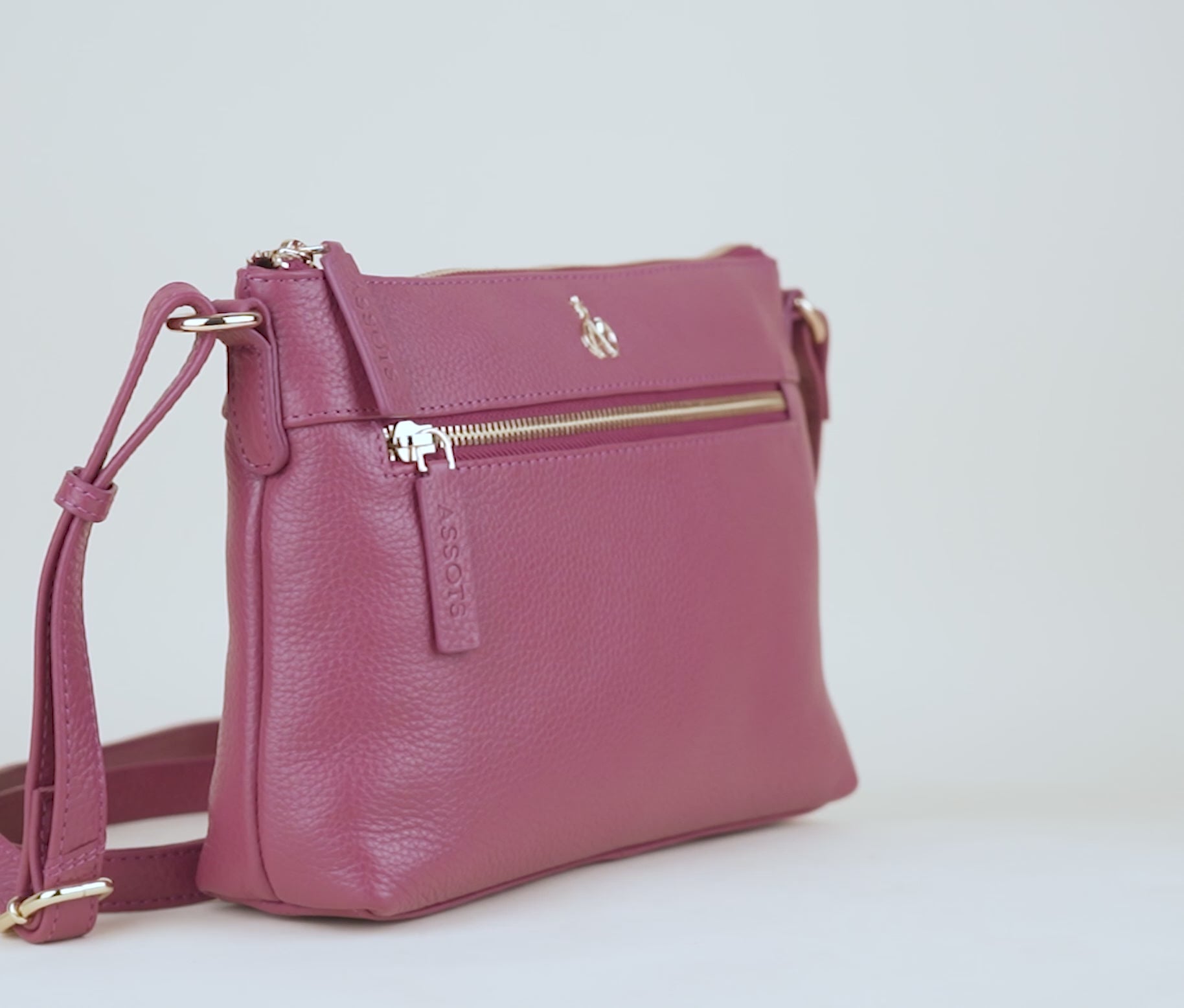 'BECKY' Carmine Pink Pebble Grain Real Leather Crossbody Bag