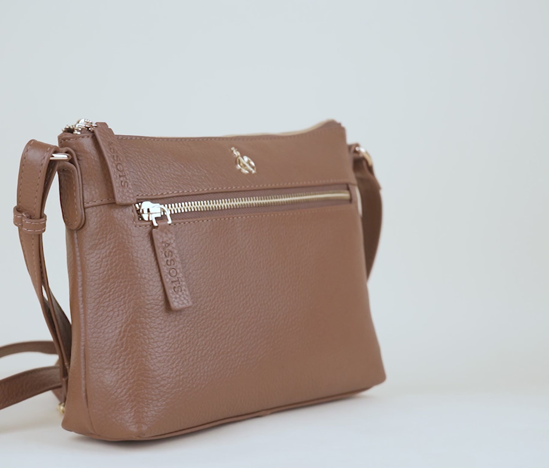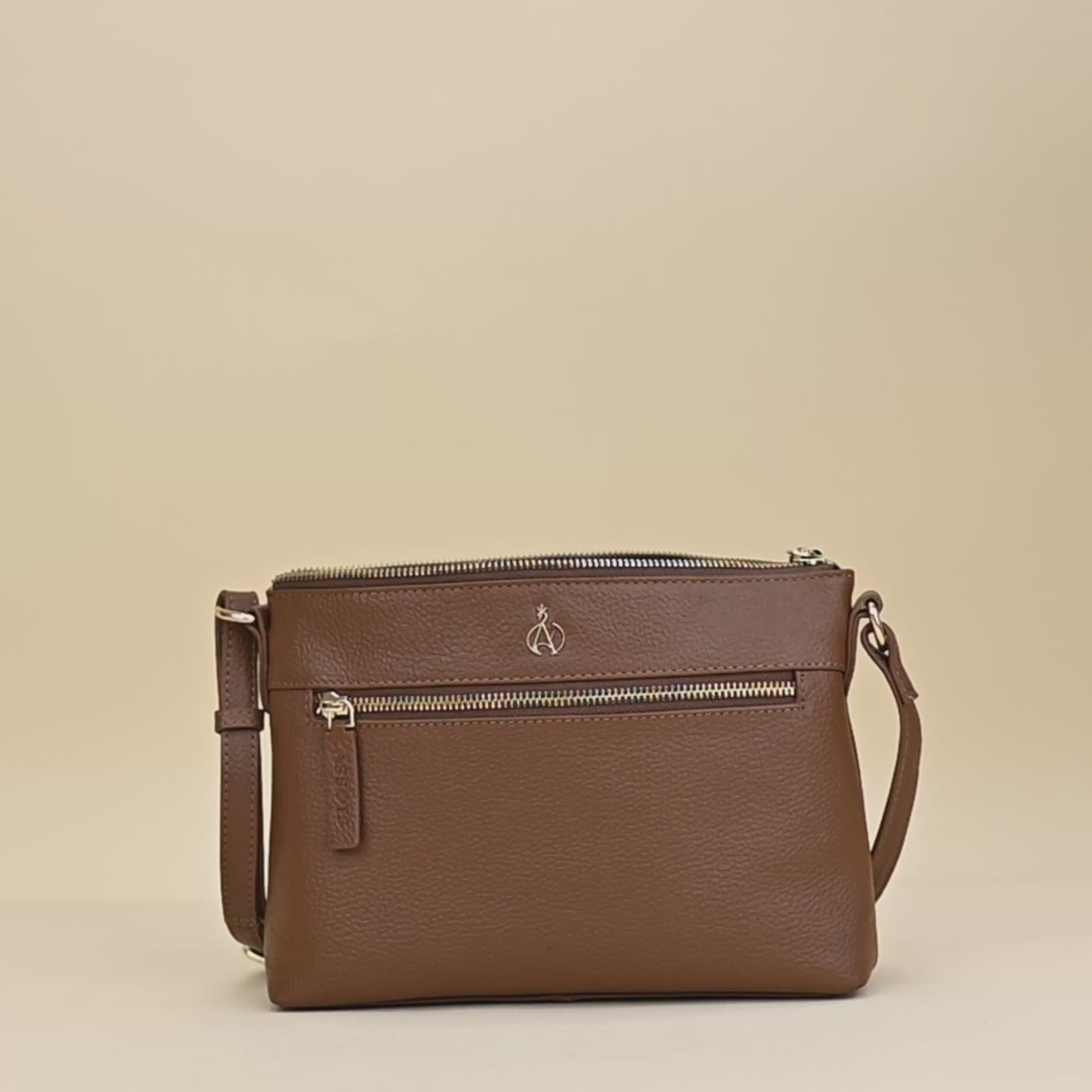 'BECKY' Tan Pebble Grain Real Leather Crossbody Bag