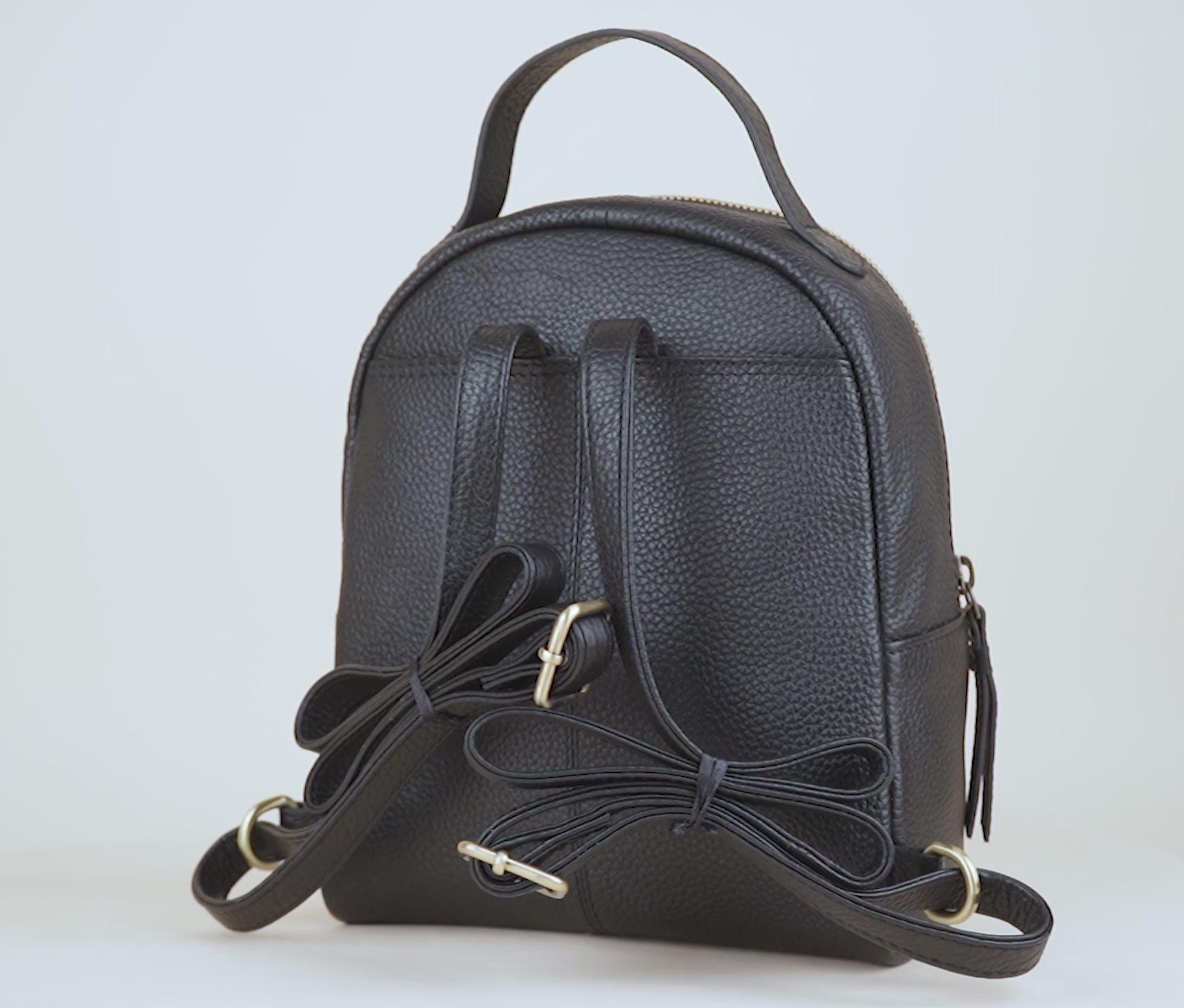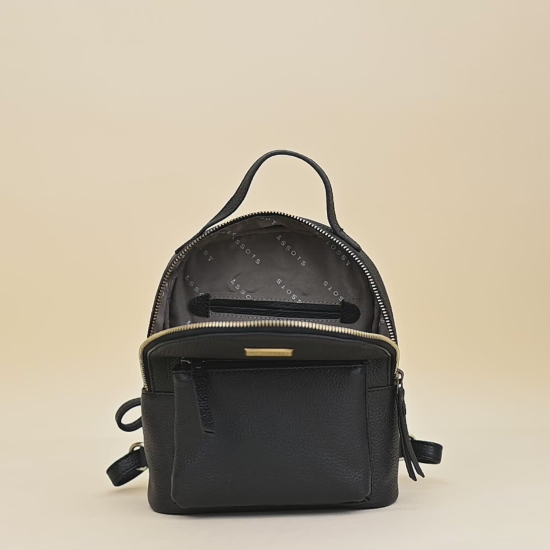 'Betty' Tan Zip Top Mini Pebble Grain Leather Backpack