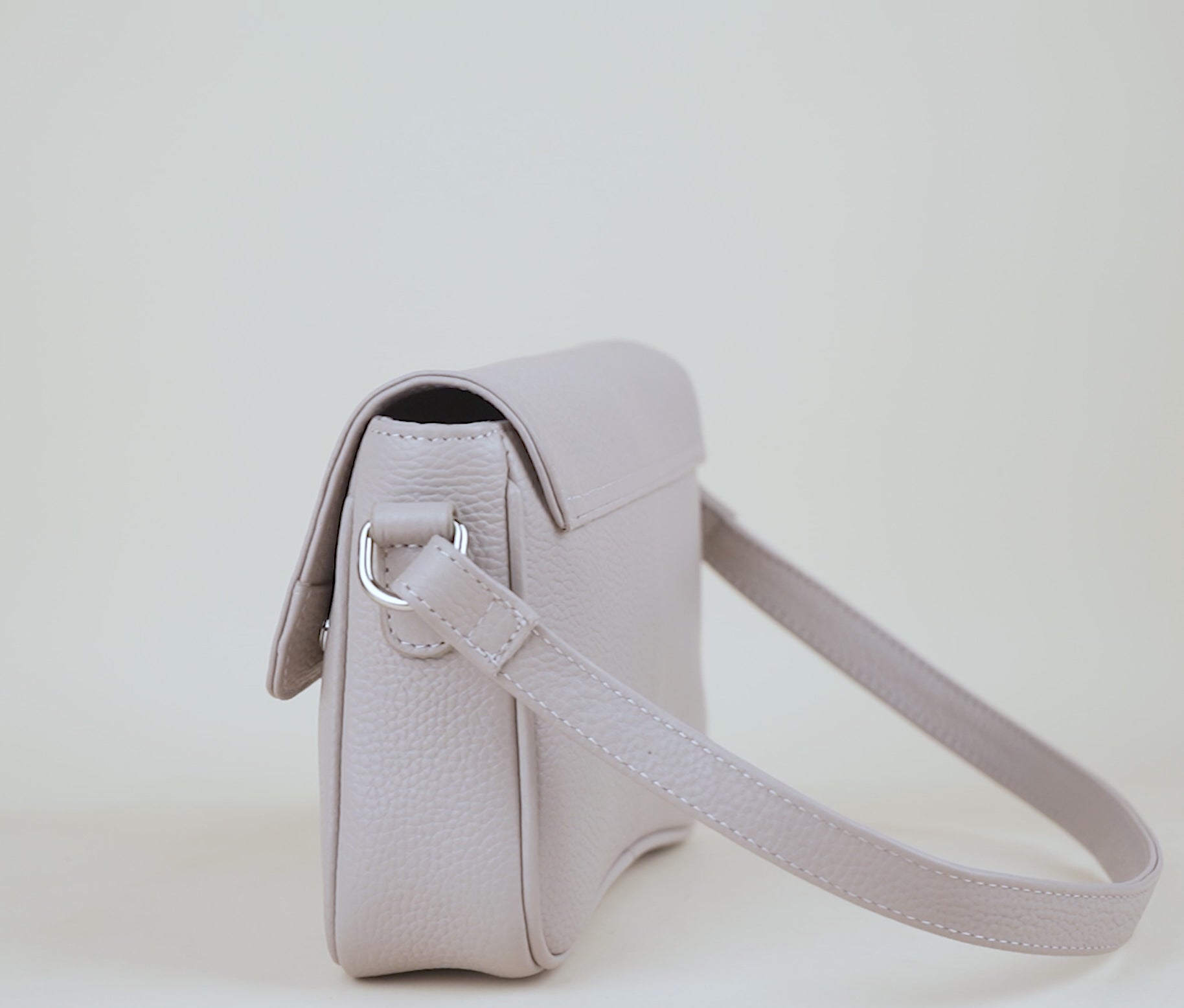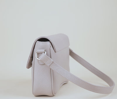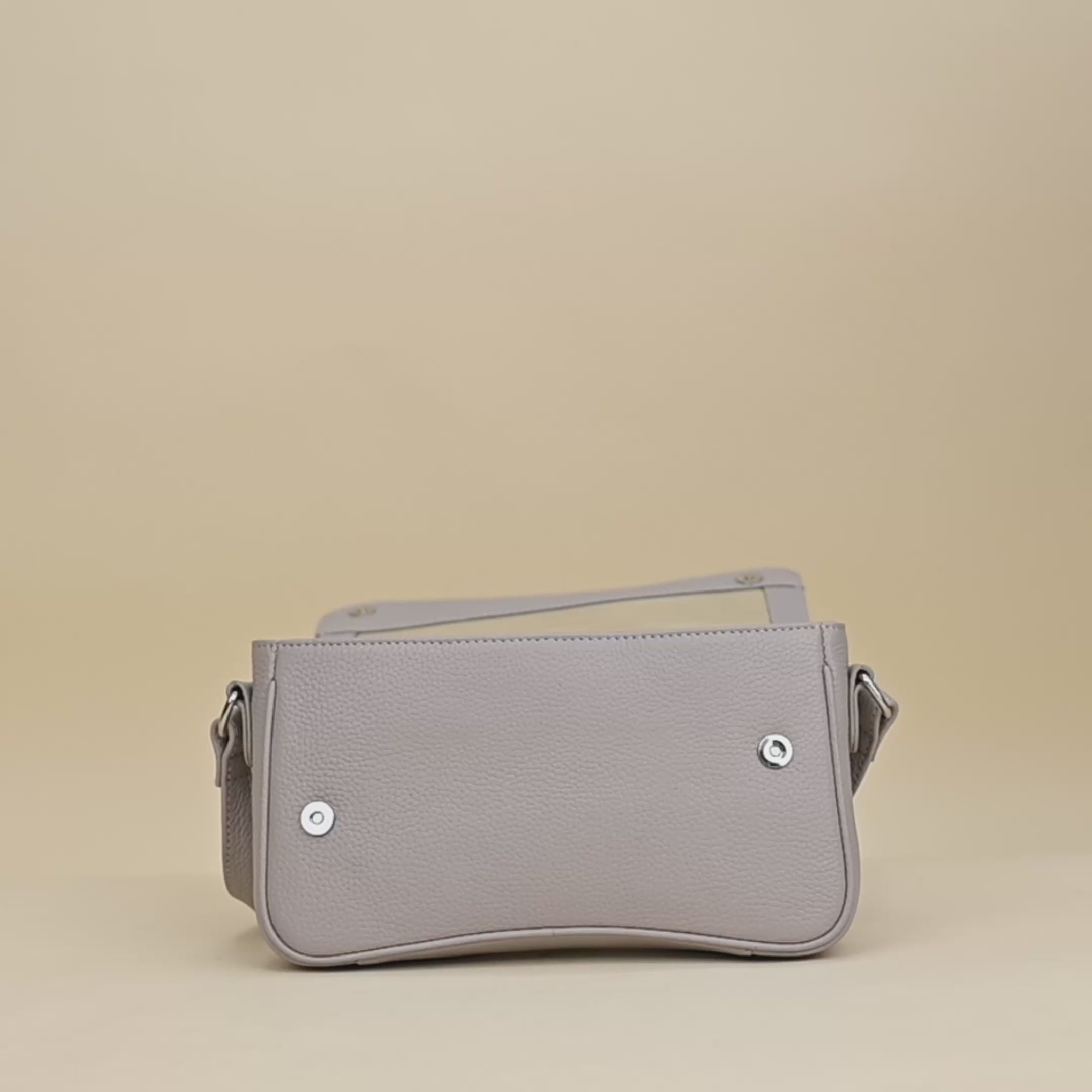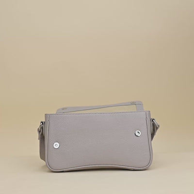 'Beverly' Ice Grey Pebble Grain Real Leather Shoulder Bag