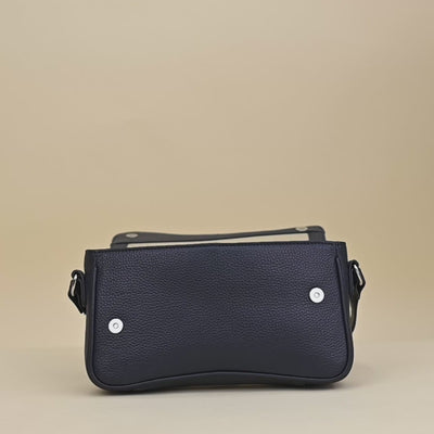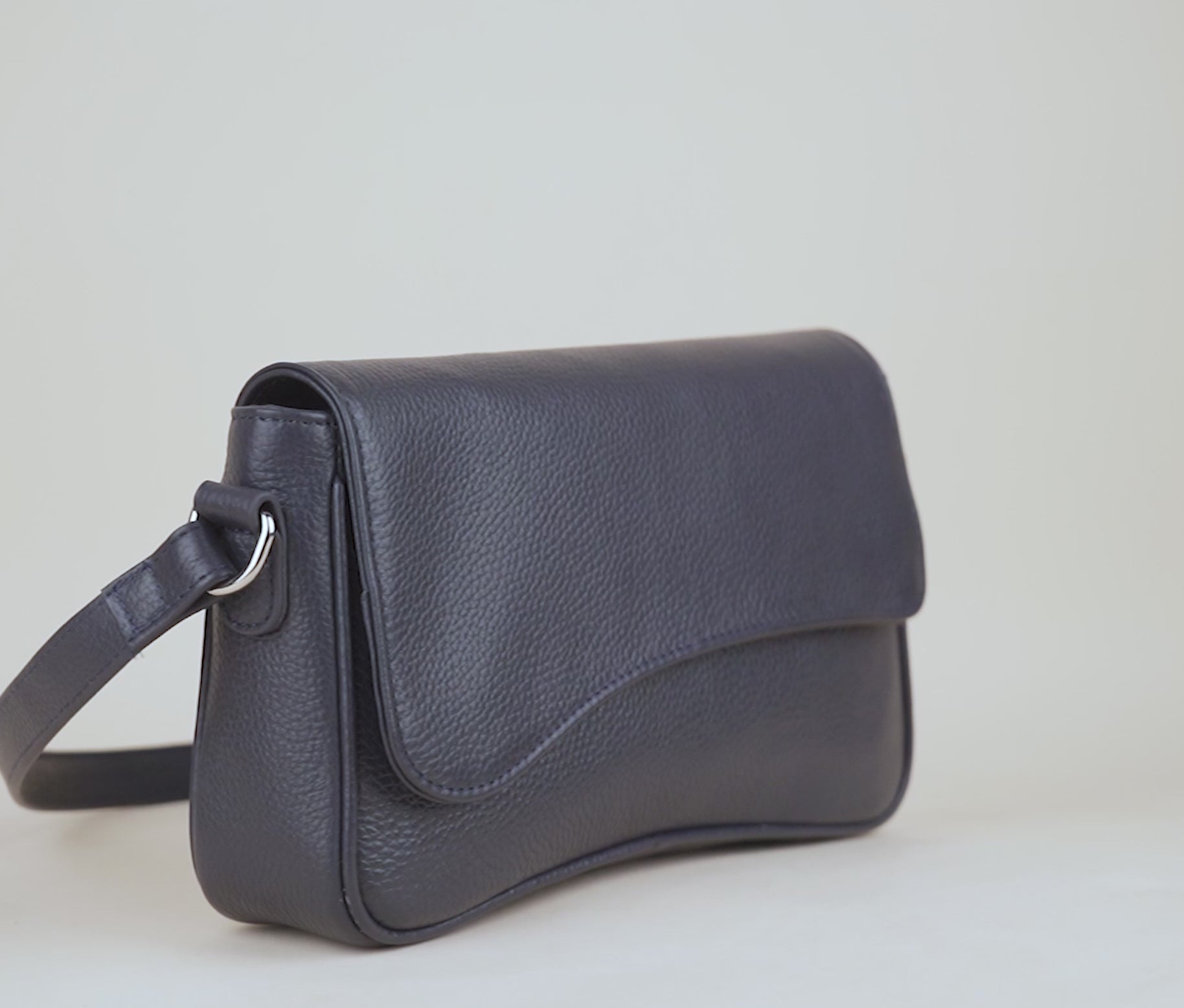 'Beverly' Navy Pebble Grain Real Leather Shoulder Bag