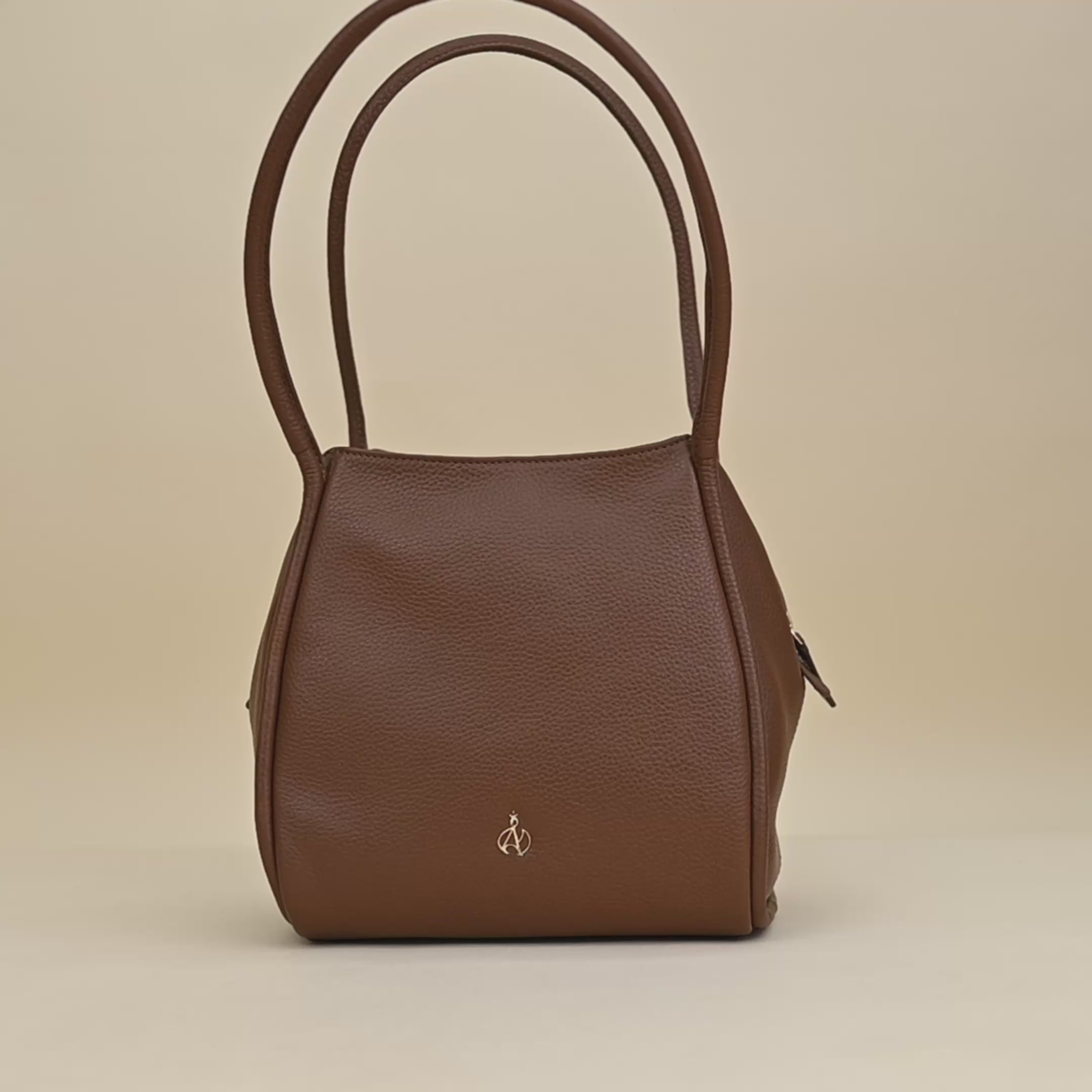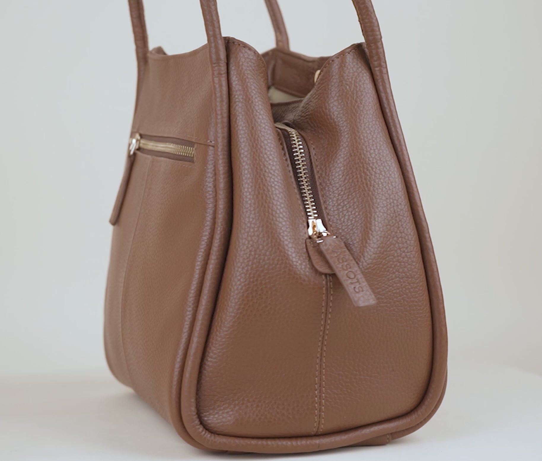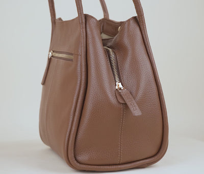 'Debbie' Tan Pebble Grain Real Leather Shoulder Bag