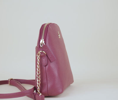 'DOVE' Carmine Pink Pebble Grain Real Leather Crossbody Bag Sale price$86.00 Regular price$124.00