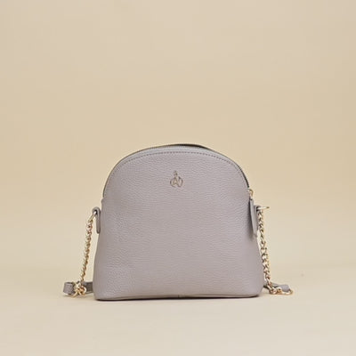 'DOVE' Ice Grey Pebble Grain Real Leather Crossbody Bag