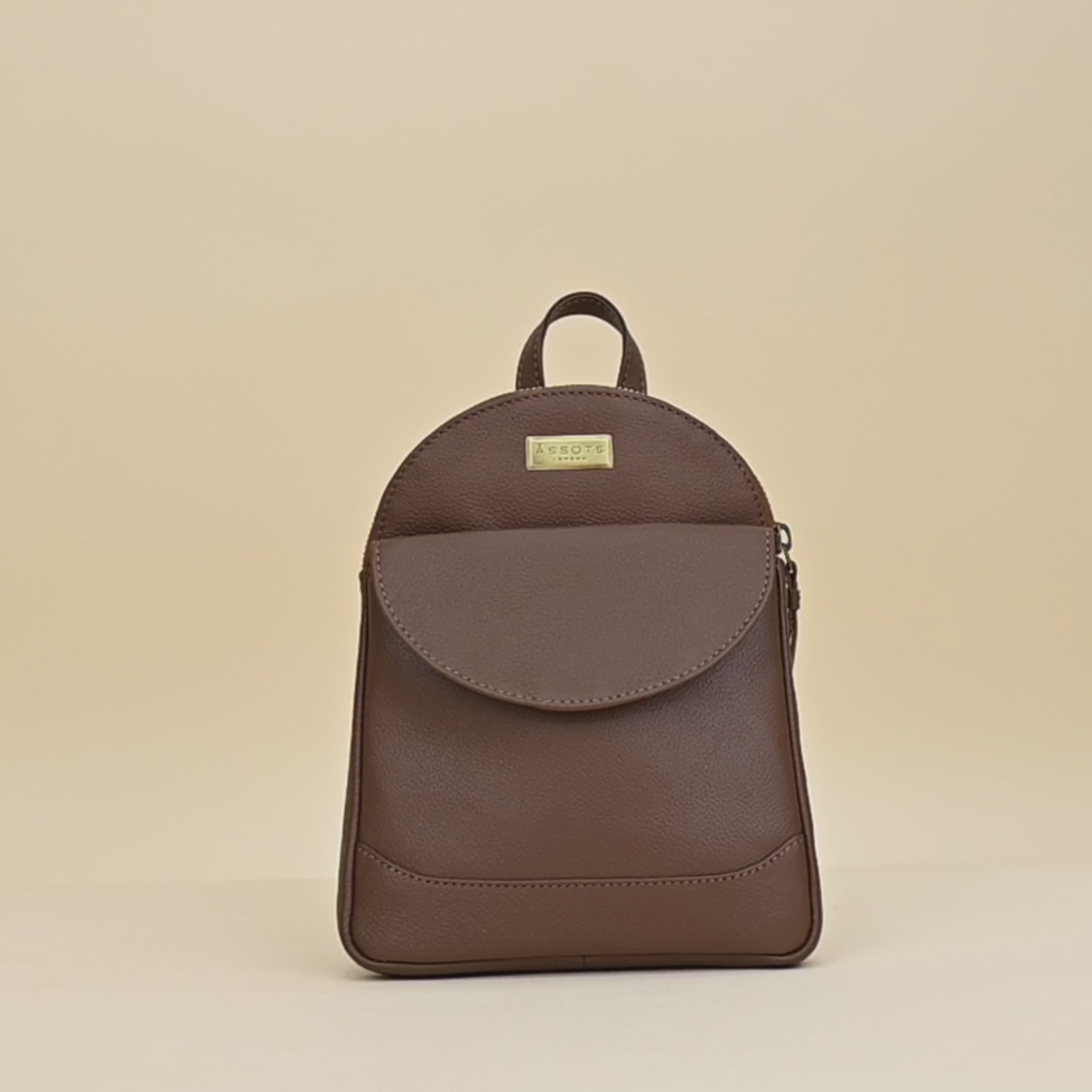 'GEORGE' Tan Mini Pebble Grain Leather Backpack