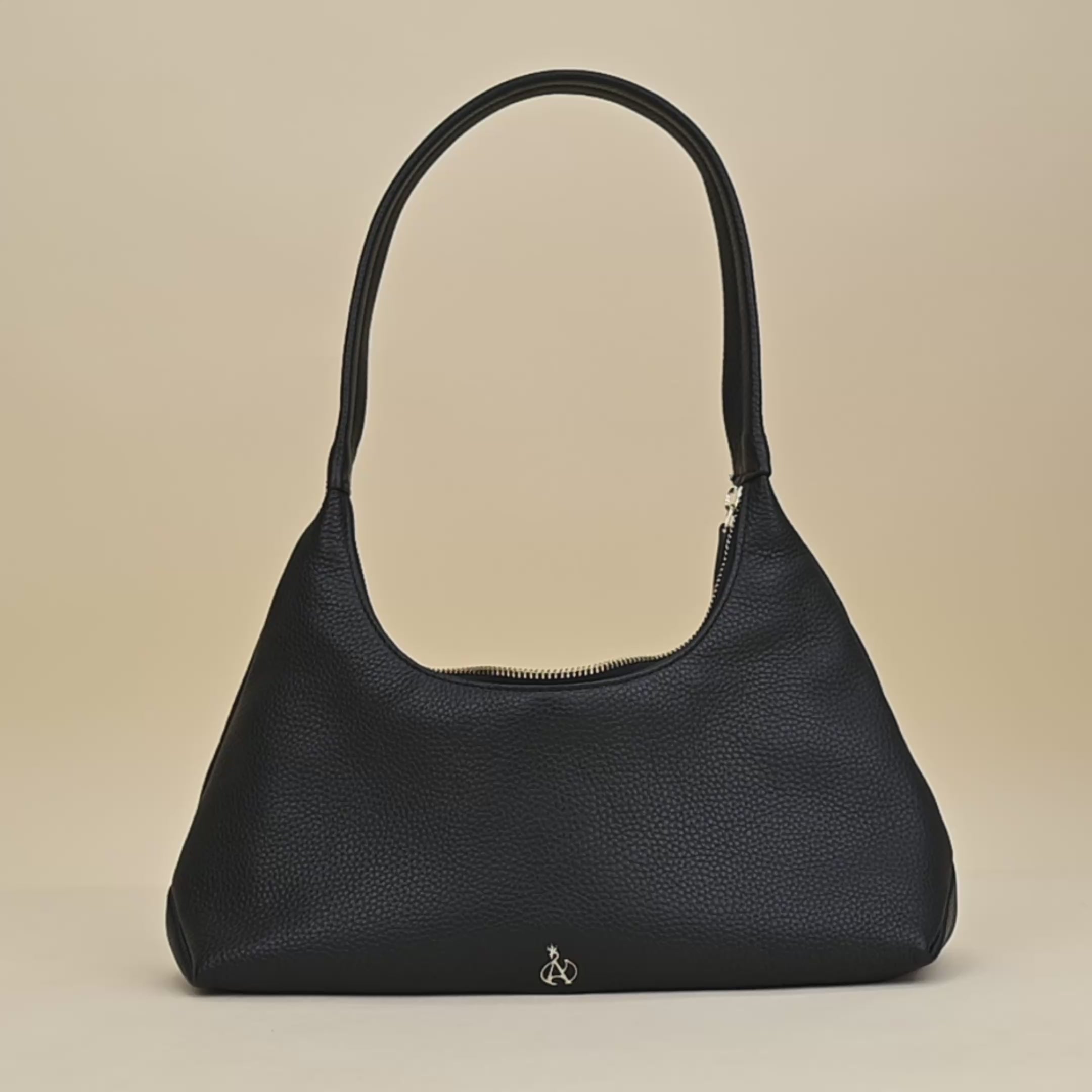 'LARA' Black Pebble Grain Real Leather Shoulder Bag Sale price$103.00 Regular price$188.00