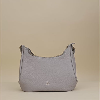 'NATASHA' Ice Grey Pebble Grain Real Shoulder Bag