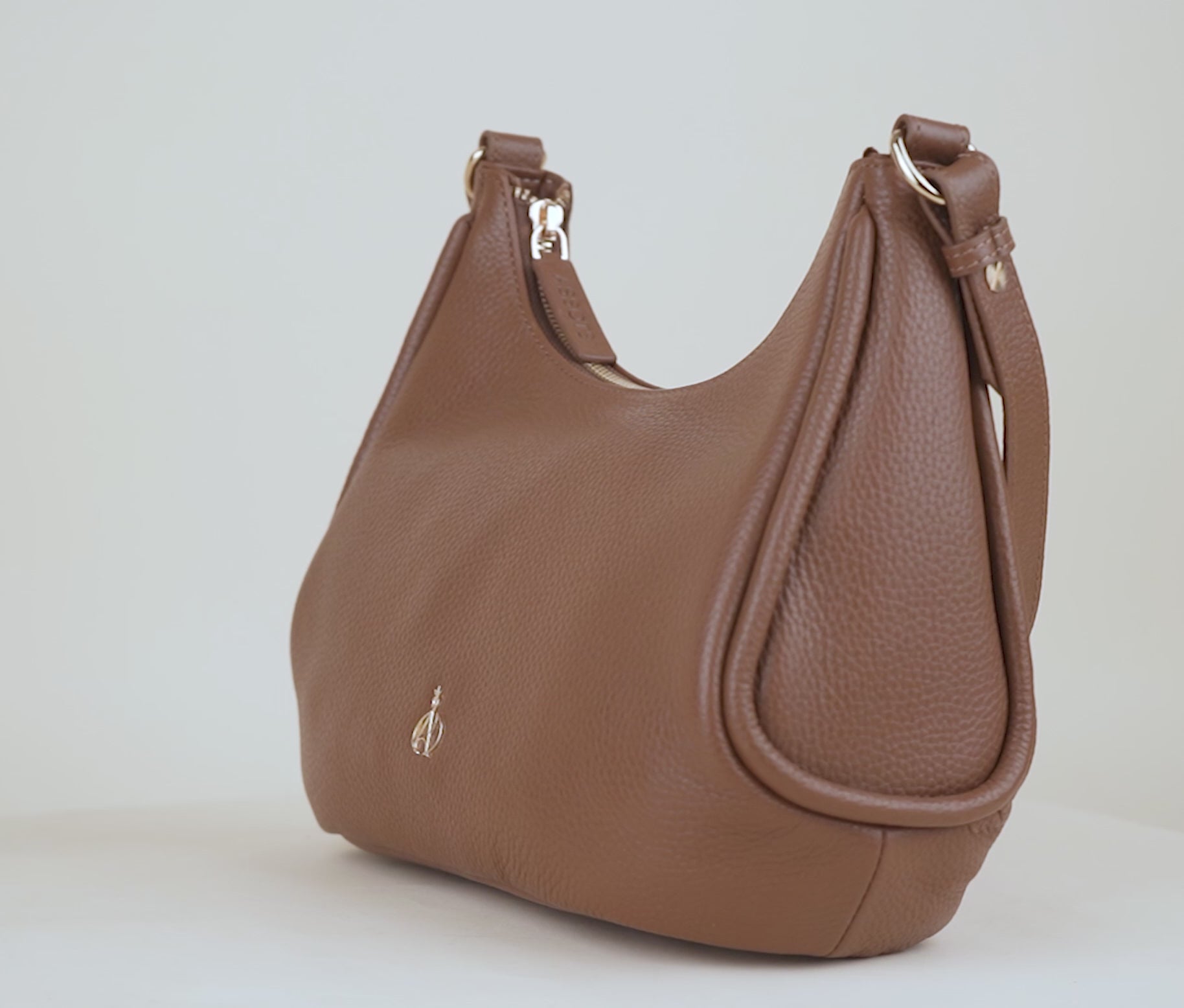 'NATASHA' Tan Pebble Grain Real Shoulder Bag Sale price$121.00 Regular price$218.00
