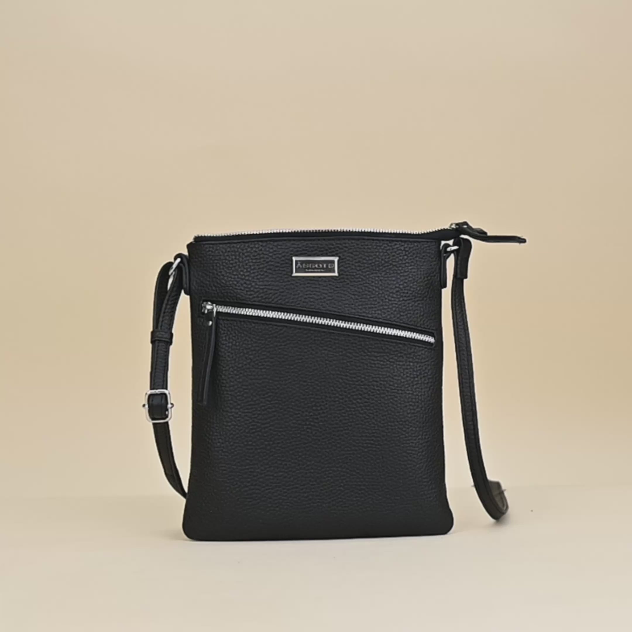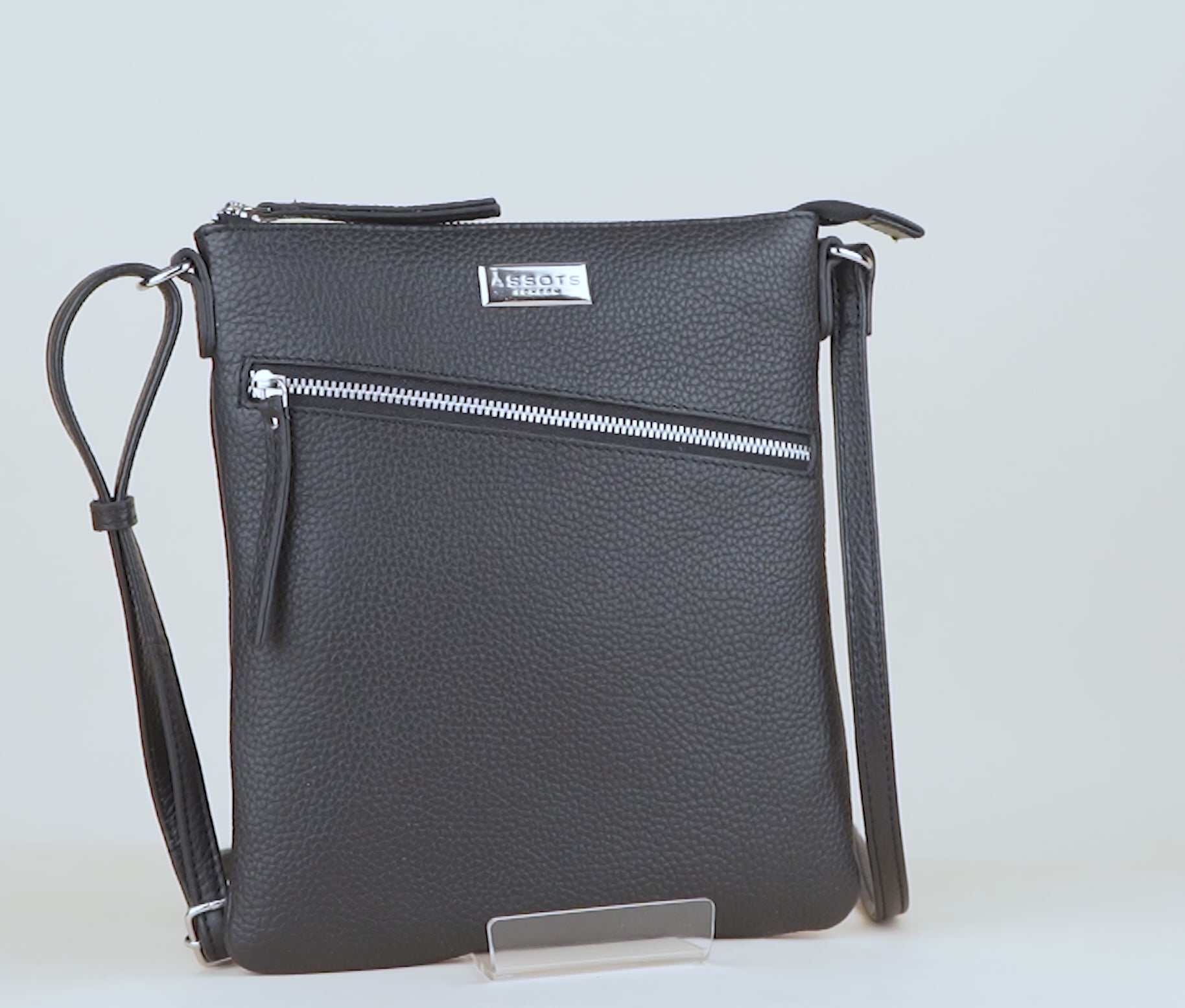 'ROSY' Black Pebble Grain Soft Real Leather Crossbody Bag